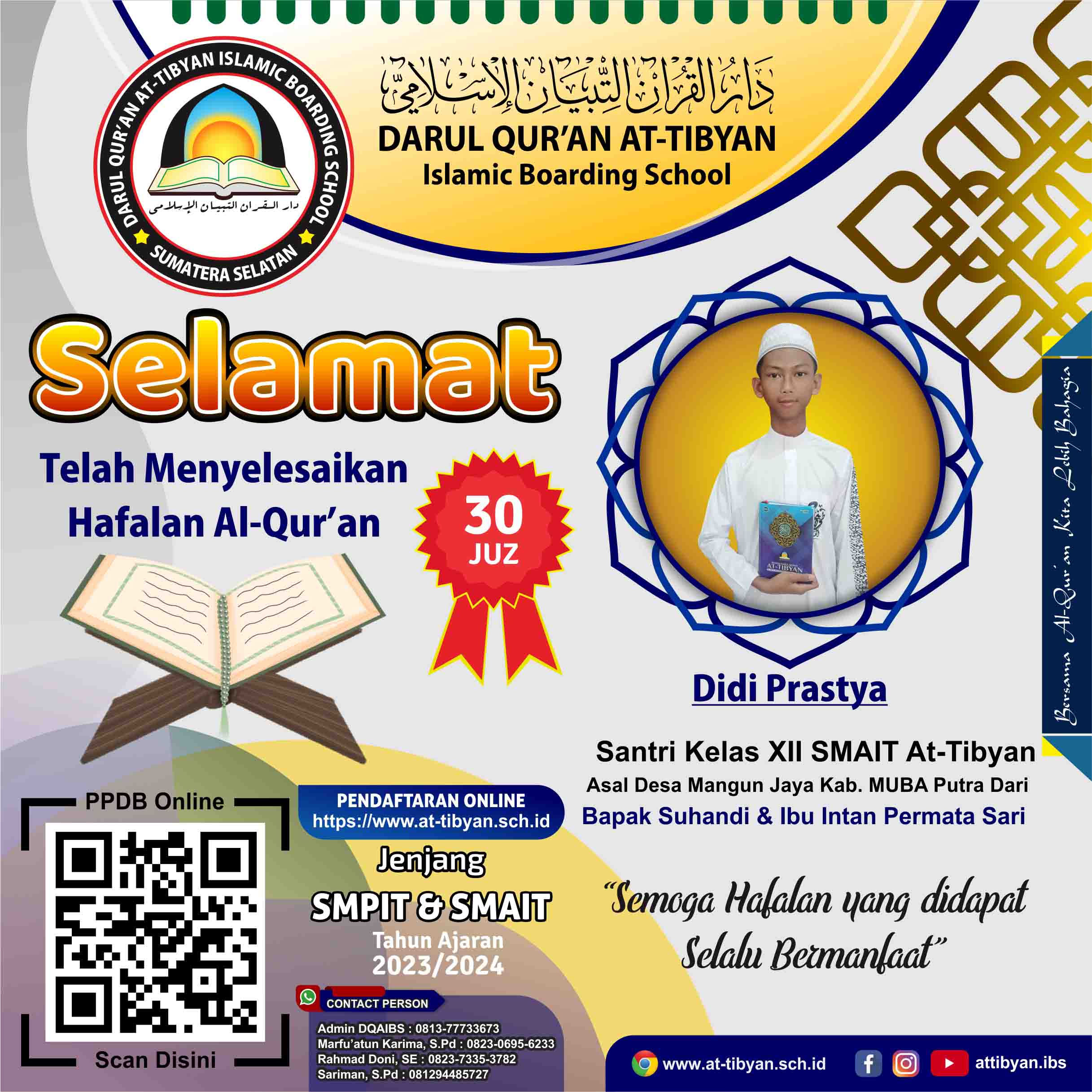 Selamat Buat Ananda Didi Prastya yang Sudah menyelesaikan Hafal Al-Qur’an 30 JUZ